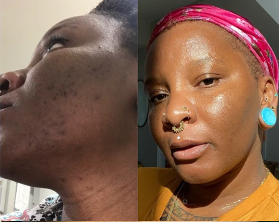 Je n’avais même pas remarqué l’effet..., c’est ma sœur qui m’a dit : ‘T’as fait quoi à ta peau ?’, et là, j’ai su que ça marchait vraiment, taches atténuées, boutons en pause, et glow de ouf.